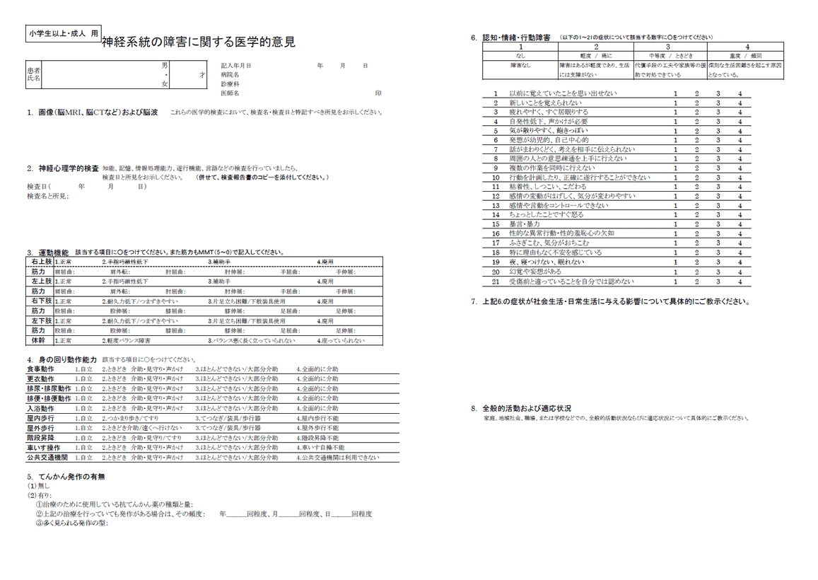 この書式では、認知障害、行動障害及び人格変化などについて、医師が医学的見地にたって作成してもらうことになります。